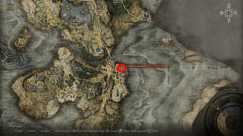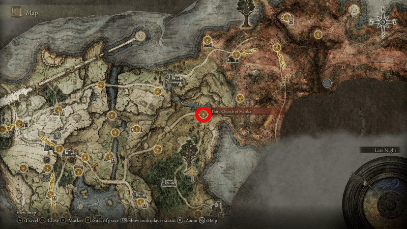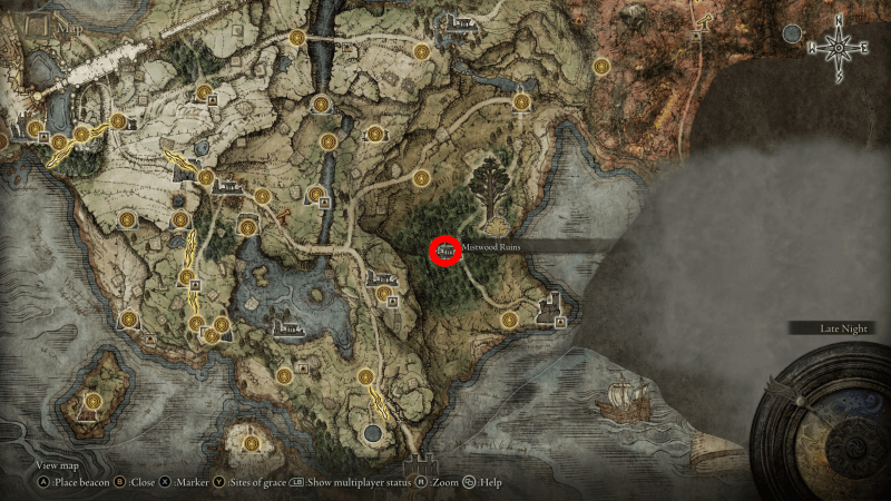 | 5 | ![]() Head north from the Castle Morne Rampart Site of Grace and grab the Weeping Peninsula Map from the monument. |