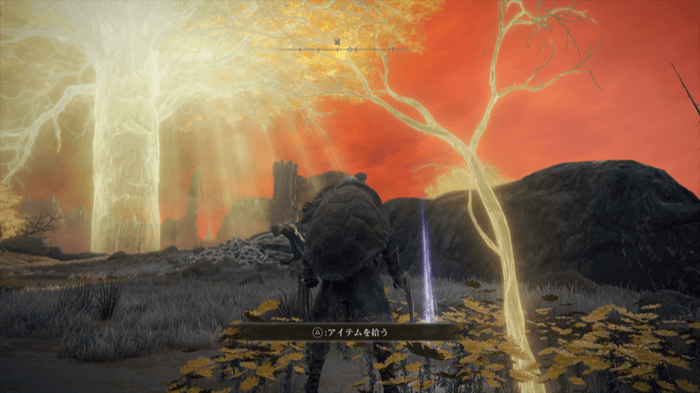 Head outside the building and find the glowing sapling on the right side of the field. Note that you may trigger a boss fight between the Black Blade Kindred if you pass towards it.