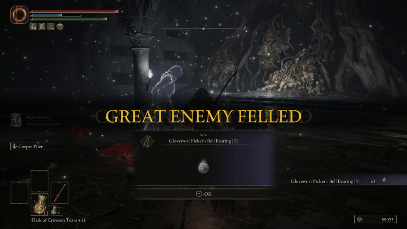 The Glovewort Picker's Bell Bearing 1 is a reward for defeating the Erdtree Burial Watchdog boss in Wyndham Catacombs.